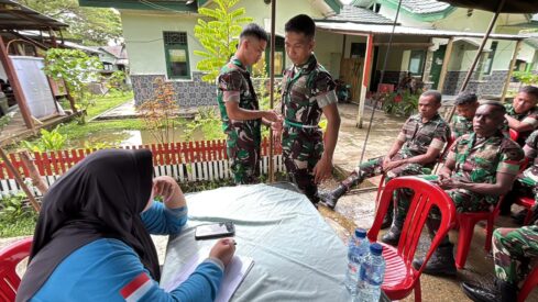 Korum Yonif 763/SBA bekerja sama dengan Persit Kartika Chandra Kirana Ranting 3 Yonif 763/SBA dan Puskesmas Teluk Bintuni melaksanakan kegiatan Penyuluhan Posyandu Penyakit Tidak Menular (PTM) serta Pemeriksaan Malaria yang berlangsung di Posyandu Yonif 763/SBA. (30/10/2025).