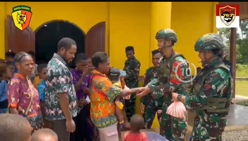 Satgas Yonif 763/SBA Pos Bori Berbagi Kebaikan Kepada Masyarakat