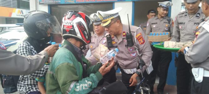 Dalam kesempatan tersebut, sebanyak 150 paket makanan berupa nasi bungkus dan minuman kemasan dibagikan kepada pengendara roda dua, roda empat, Penyapu Jalanan hingga warga yang melintas di sekitar lokasi. Selain berbagi, polisi lalu lintas juga memanfaatkan momen ini untuk berdialog langsung dengan masyarakat dan menyampaikan imbauan pentingnya tertib berlalu lintas.