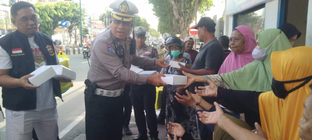 Satlantas Polresta Balikpapan dan HDCI Gelar Jumat Berkah, Bagikan 200 Kotak Nasi di Terminal Balikpapan Permai
