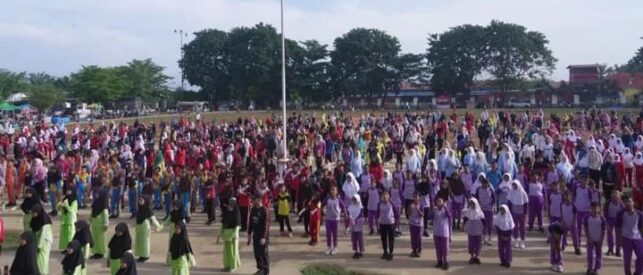baju senam ya tampak basah berkeringat goyangan dan alunan musik begitu menggema, mengiringi langkah-langkah ceria ratusan siswa-siswi SD yang berbaris rapi. Dengan seragam olahraga penuh warna, mereka bergerak lincah mengikuti irama tertawa, bersemangat, dan menularkan aura positif kepada siapa pun yang melihat.