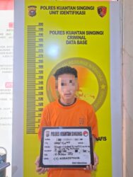 Pelaku diketahui berinisial MIM(25), warga Desa Simpang Tiga, Kecamatan Kuantan Tengah. Saat dilakukan penggeledahan, petugas menemukan 24 paket sabu siap edar, alat hisap bong, kaca pirex berisi sabu, plastik klip kosong, pipet sendok, serta handphone iPhone warna hitam dan tas hitam merk KLAVAN.