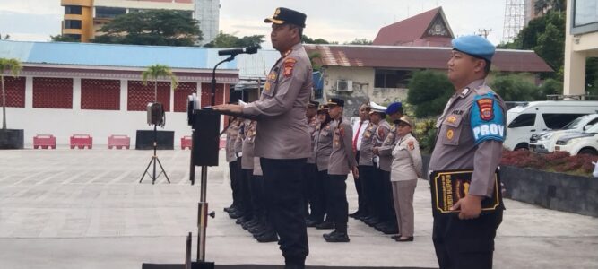 Wakapolres Balikpapan, AKBP Hendrik Eka Bahalwan, S.H., S.I.K., memimpin apel pagi di halaman Mapolresta Balikpapan, Jalan Jenderal Sudirman, Kelurahan Klandasan Ulu, Kecamatan Balikpapan Selatan, pada Senin (6/10/2025).