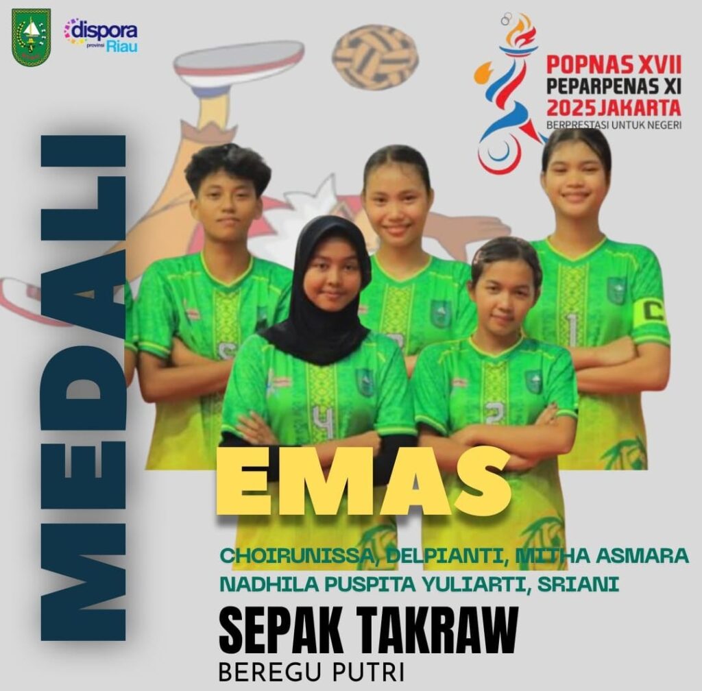 9 November 2025 — Tim sepak takraw putri Riau kembali mengharumkan nama daerah dengan torehan gemilang di ajang Pekan Olahraga Pelajar Nasional (POPNAS) XVII dan Pekan Paralimpik Pelajar Nasional (PEPARPENAS) 2025 yang digelar di GOR Cempaka Putih, Jakarta Pusat, sejak 2 hingga 9 November 2025.