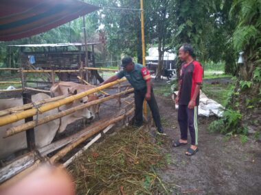 Senin 3 November 2025 – Dalam rangka menjaga kesehatan hewan ternak di wilayah binaan, Sersan Dua (Srd) Wondo, Babinsa Koramil 04/Rupat, bersama Bapak Karman selaku pemilik ternak, melaksanakan kegiatan pemantauan penyakit mulut dan kuku (PMK) terhadap hewan ternak di Desa Pancur Jaya, Kecamatan Rupat, Kabupaten Bengkalis.