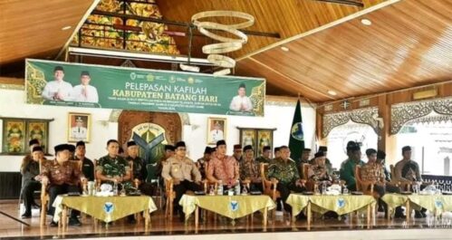 Bupati Batang Hari Mhd Fadhil Arief secara simbolis Melepas Keberangkatan Kafilah Kabupaten Batang Hari menuju Musabaqoh Tilawatil Qur’an (MTQ) ke-54 tingkat Provinsi Jambi di Muaro Jambi. Pelepas di Serambi Rumah Dinas Bupati Batang Hari. berjalan khidmat dengan iringan do’a dan harapan bersama. Kamis (13/11/2025)