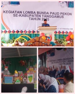Bupati Tanggamus, Drs. H. Moh. Saleh Asnawi, M.A., M.H., menghadiri sekaligus memberikan sambutan pada kegiatan peningkatan kualitas Pendidikan Anak Usia Dini (PAUD) di Kabupaten Tanggamus. Dalam kesempatan itu, beliau menyampaikan apresiasi kepada seluruh panitia yang telah bekerja keras menyukseskan acara tersebut. Senin 18/11/2025.