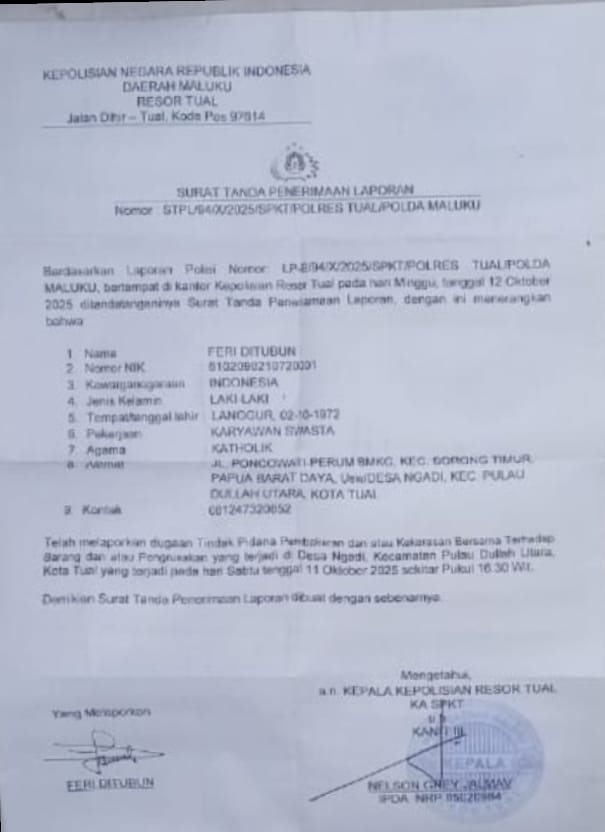 Tak luput walau telah melaporkan sejak 11 Oktober 2025 lalu, hingga di bulan ini belum sama sekali terlihat adanya tanda-tanda maupun langkah tegas kepolisian Resor Polres Tual.