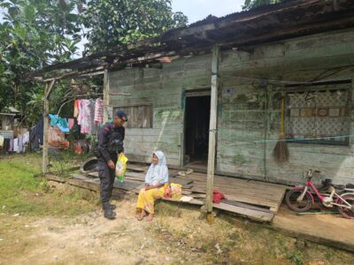 Personel Brimob menyerahkan paket bantuan sembako secara langsung kepada Ibu Warsiti. Selain menyerahkan bantuan, personel juga menyempatkan diri berdialog dan memastikan kondisi kesehatan serta kebutuhan Ibu Warsiti. Pendekatan humanis ini menunjukkan bahwa Korps Brimob tidak hanya fokus pada tugas-tugas penegakan hukum dan keamanan, tetapi juga aktif dalam aksi kemanusiaan dan sosial.