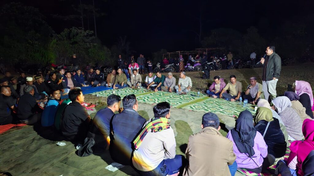 Dialog malam digelar dengan penerangan obor bambu. Warga enam desa menyampaikan keluhan utama terkait akses jalan serta usulan pembangunan jalan alternatif menuju Pasar Lembah Masurai.