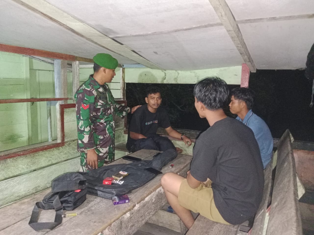 Patroli Mitigasi TNI, Ketua RT, Linmas dan Pemuda Setempat Jaga Keamanan di Wilayah Koramil 04/Rupat