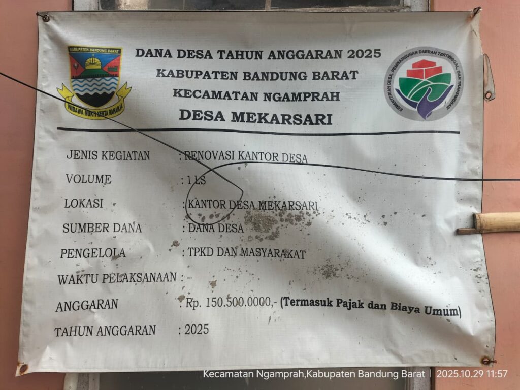 “Itu Desa Mekarsari sedang melaksanakan rehab, coba tanyakan berapa anggarannya dan sumber anggarannya darimana. Soalnya waktu saya ke Kantor Desa tidak ada papan proyeknya dan pelaksanaan pekerjaannya berhenti, itu mangkrak atau bagaimana,” katanya Senin (27/10/2025).