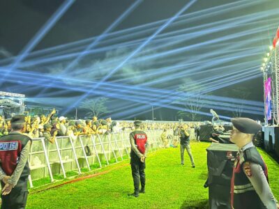 Polres Kutai Timur menyatakan rangkaian konser Dewa 19 yang digelar Rabu (19/11/2025) malam berlangsung aman, tertib, dan tanpa kendala berarti. Ribuan penonton yang memadati area konser di GOR Kudungga Sangatta dapat menikmati jalannya acara dengan nyaman berkat pengamanan yang disiapkan secara maksimal.