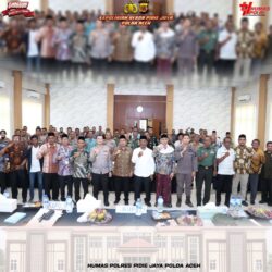 Turut hadir Bupati Pidie Jaya H. Sibral Malaysi, M.A., S.Sos., M.E., Kapolres Pidie Jaya AKBP Ahmad Faisal Pasaribu, S.H., S.I.K., M.H., Pabung Kodim 0102/Pidie Mayor Inf Ruslan, Ketua DPRK Pidie Jaya A. Kadir Jailani, Ketua MPU Dr. Tgk. H. Anwar Usman, Sekdakab Pidie Jaya Dr. Munawar Ibrahim, S.KM., M.H., serta para camat, danramil, kapolsek, dan insan pers.