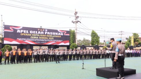 Kepolisian Resor Kota (Polresta) Banyuwangi menggelar Apel Gelar Pasukan untuk menandai dimulainya Operasi Zebra Semeru 2025. Senin pagi (17/11/2025)