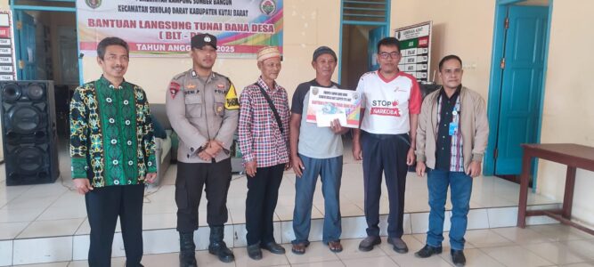 Penyaluran Bantuan Langsung Tunai Dana Desa (BLT DD) Tahun 2025 di Kampung Sumber Bangun, Kecamatan Sekolaq Darat, Kabupaten Kutai Barat, berlangsung aman dan tertib di bawah pengamanan personel Kepolisian Sektor (Polsek) Melak.