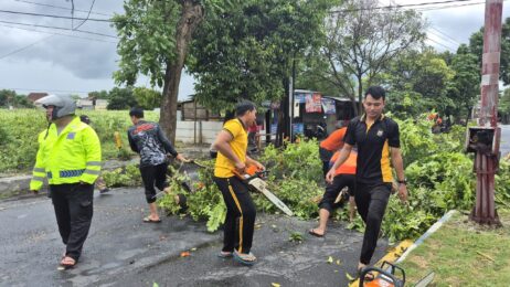 Begitu menerima laporan masyarakat, personel Polresta Banyuwangi langsung diterjunkan ke lokasi untuk melakukan pengamanan area, mengalihkan arus kendaraan, serta membantu proses evakuasi material pohon tumbang.