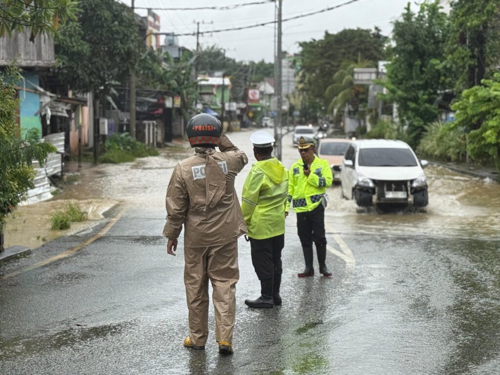 Satlantas Polresta Balikpapan Sigap Tangani Genangan dan Atur Arus Lalu Lintas Saat Hujan Deras