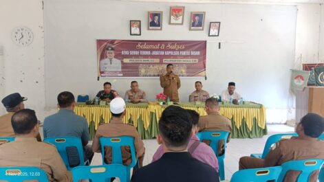 Acara pisah sambut Kapolsek Pante Bidari dari Ipda Saiful Bahri, S.E. kepada Iptu Irwan Hadi Sagala, S.AB. berlangsung khidmat dan penuh keakraban di aula Kantor Camat Pante Bidari, Kabupaten Aceh Timur, pada Selasa (4/11/2025).