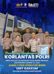 Unit Gakkum Satlantas Polresta Banyuwangi kembali menorehkan prestasi gemilang di tingkat kesatuan. Pada ajang penilaian User Operator Integrated Road Safety Management System (IRSMS), Unit Gakkum berhasil meraih Juara 1, mengungguli berbagai satuan lainnya.