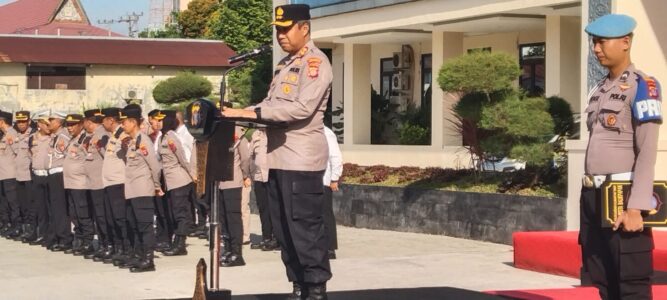 Wakapolresta Balikpapan AKBP Hendrik Eka Bahalwan S.H., S.I.K memimpin apel pagi di halaman Mapolresta Balikpapan, Jalan Jenderal Sudirman, Kelurahan Kelandasan Ulu, Kecamatan Balikpapan Selatan, Senin (3/11/2025) pukul 08.00 WITA.