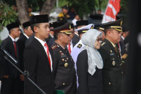 Suasana berlangsung penuh khidmat dan rasa hormat, mencerminkan semangat nasionalisme dan penghargaan mendalam terhadap jasa-jasa para pahlawan yang telah gugur demi bangsa.