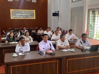 Bupati Humbang Hasundutan, Dr. Oloan Paniaran Nababan, SH., MH, mengikuti Rapat Koordinasi Teknis (Rakornis) Persiapan Kunjungan Lapangan Rencana Pemetaan dan Digitalisasi Food Estate (FE) Sumut via zoom yang diselenggarakan oleh Kementerian Koordinator Bidang Pangan Republik Indonesia, bertempat di Ruang Inspirasi, Kantor Bupati Humbang Hasundutan, Doloksanggul, Rabu, 3/12/2025.