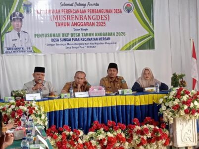 Pemerintah Desa Sungai Puar, Kecamatan Mersam kabupaten Batang Hari, menggelar Musyawarah Perencanaan Pembangunan Desa (MUSRENBANGDES) di Aula kantor Desa Sungai Puar, Senin 25 Agustus 2025, hadir pada acara tersebut Anggota DPRD kabupaten Batang Hari, Irwanto Ependi, Kepala Desa Camat, BPD, unsur masyarakat sebagai peserta Musrenbang.