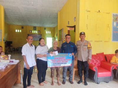Kepolisian Sektor (Polsek) Melak memastikan kelancaran dan ketertiban proses penyaluran Bantuan Langsung Tunai Dana Desa (BLT DD) Tahun 2025 di Kantor Pemerintah Kampung Karangan, Kecamatan Mook Manaar Bulatn (MMB), yang merupakan wilayah hukum Polsek Melak.