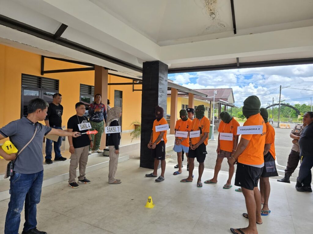 Rekonstruksi tersebut diperankan langsung oleh ketujuh Tersangka dengan inisial TL alias LASOL, WBT AE alias ANTON, YR alias BONG, YJF, WBH alias WEBEN, dan FPL, sementara untuk peran Korban diperankan oleh pemeran pengganti. Pelaksanaan kegiatan rekonstruksi telah dilakukan sebanyak 23 adegan, yang telah dianggap memenuhi syarat administratif untuk pelimpahan berkas perkara Tahap I.