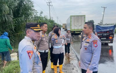 Kapolres Pelalawan Tinjau Lokasi Banjir Di Jalan Lintas Timur Desa Kemang KM. 83