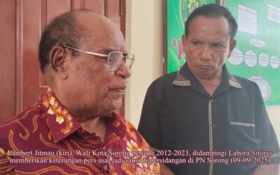 Sorong, Papua Barat Daya –jurnalpolisi.id Mantan Wali Kota Sorong dua periode, Lambert Jitmau, hadir di ruang sidang Pengadilan Negeri (PN) Sorong pada Selasa, 09 September 2025. Lambert Jitmau dihadirkan untuk memberikan kesaksian dan keterangan tentang dokumen izin reklamasi yang diklaim sebagai alas hak Paulus George Hung alias Ting-ting Ho alias Mr. Ching atas tanah yang…