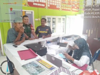 Babinsa Koramil 04/Rupat pada Senin, 5 Januari 2026, pukul 09.00 WIB s/d selesai, melaksanakan kegiatan Komunikasi Sosial (Komsos) bersama Praka Tarigan di Desa Teluk Lecah, Kecamatan Rupat, Kabupaten Bengkalis.