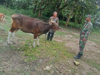 Babinsa Koramil 04/Rupat Laksanakan Pemantauan PMK Hewan di Desa Hutan Panjang Terkul