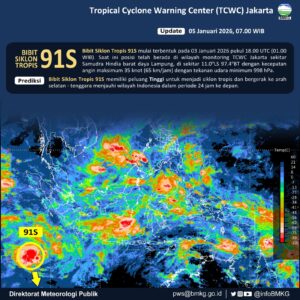 Badan Meteorologi Klimatologi, dan Geofisika (BMKG) mengeluarkan peringatan dini gelombang tinggi yang berpotensi terjadi di beberapa wilayah perairan pada 5 – 8 Januari 2026.