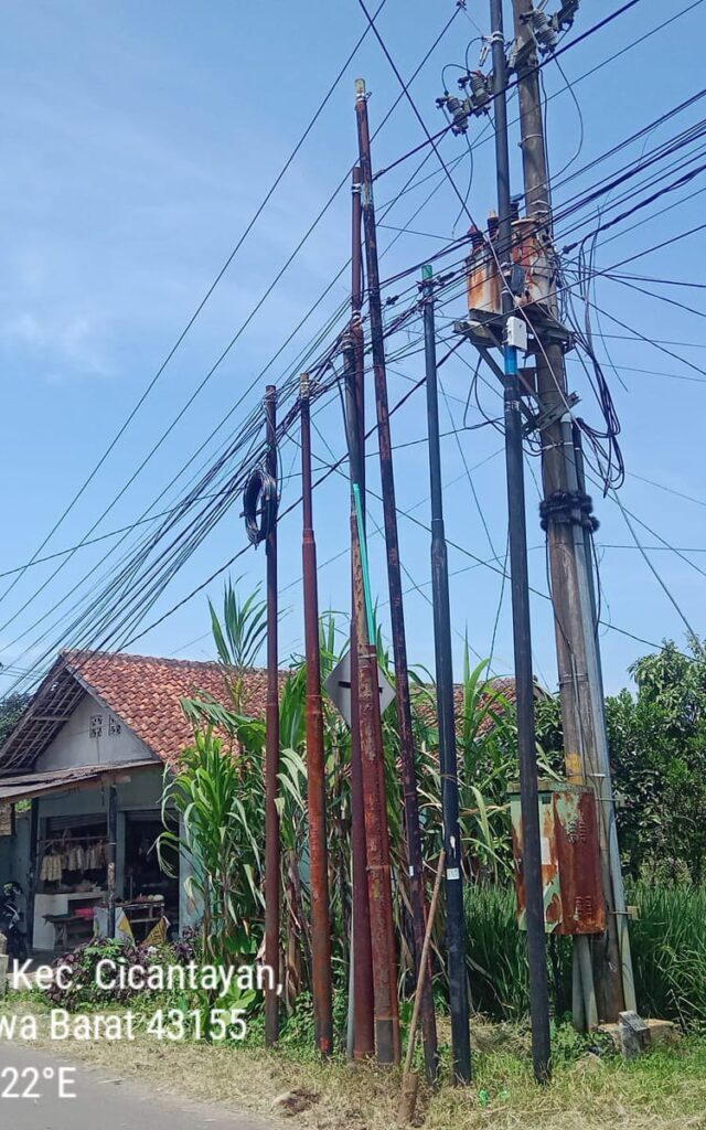 Beban Berlebih: Tiang penyangga memiliki kapasitas beban tertentu; penumpangan kabel tanpa izin berisiko membuat tiang miring atau roboh.