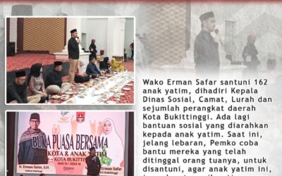 Bukittinggi – jurnalpolisi.id Ratusan anak yatim dapat santunan dari Wali Kota Bukittinggi, Erman Safar. Santunan itu diberikan wali kota, setelah buka bersama di balairung rumah dinas wako, Kamis 04 April 2024. Wali Kota Bukittinggi, Erman Safar, menyampaikan, banyak program pemerintah yang bisa dilakukan untuk memperhatikan dan membantu masyarakat, termasuk anak yatim. Baik itu pendidikan, termasuk…