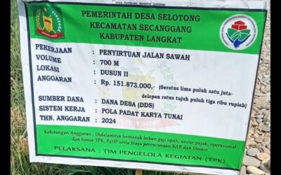 Langkat – jurnalpolisi,id Pemerintah Desa Selotong kecamatan Secanggang,kabupaten Langkat menggelontorkan dana desa(DD)thn anggaran 2024 ,untuk membangun infrastruktur jalan sawah dsn II menuju persawahan warga masyarakat guna memperlancar akses transportasi serta pemasaran hasil panen pertanian diwilayah dsn II desa selotong. Pembangunan infrastruktur jalan sawah dsnII menuju sawah masyarakat tersebut berupa penyirtuan pengerasan jalan sepanjang 700 m…