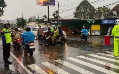 Ditengah Guyurab Hujan Polisi di Purbalingga Tetap Atur Lalu Lintas Cegah Kemacetan