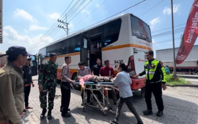 Gercep Polisi Beri Pertolongan Pemudik di Kota Mojokerto yang Pingsan di Bus