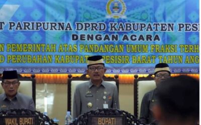 Pesisir Barat ,Lampung – jurnalpolisi.id Bupati Pesisir Barat (Pesibar), Dr. Drs. Agus Istiqlal, S.H., M.H., menghadiri rapat Paripurna Dewan Perwakilan Rakyat Daerah (DPRD) dengan agenda Jawaban Pemerintah Atas Pandangan Umum Fraksi-Fraksi DPRD Terhadap Rancangan Peraturan Daerah (Ranperda) tentang Anggaran Pendapatan dan Belanja Daerah (APBD) Perubahan Tahun 2024, di ruang paripurna DPRD Pesibar, Jumat (2/8/2024). Rapat…