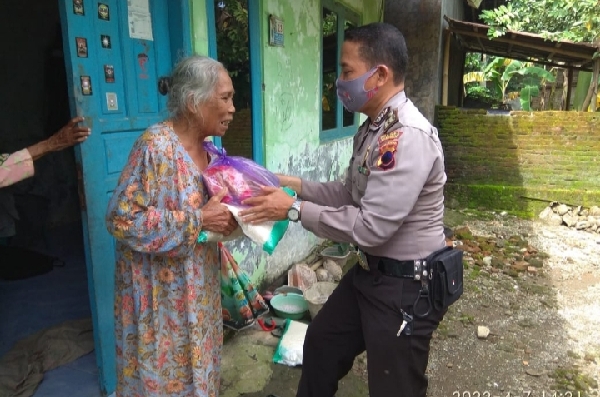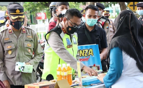 Berbagi di Masa Pandemi,Kapolres Nganjuk Borong Jajanan Kaki Lima Saat Pimpin Patroli Ramadhan