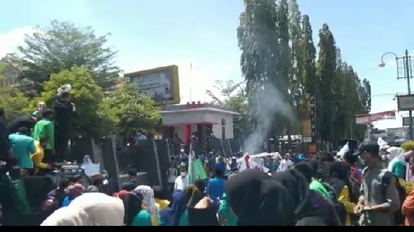 Sebanyak 2 Pleton Personil Polres Bintan turun mengamankan aksi unjuk rasa di Kantor DPRD Provinsi Kepri