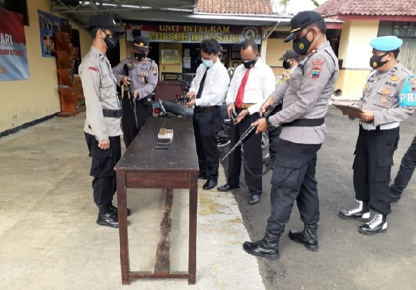 Pastikan Siap Digunakan, Kapolsek Kutasari Cek Ranmor dan Senjata Api Dinas
