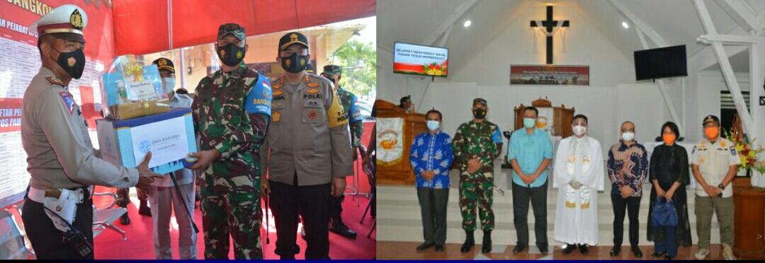 Tangkal Penyebaran Covid-19, Personel Pos Pam Natal dan Tahun Baru, Bagikan Masker kepada Masyarakat