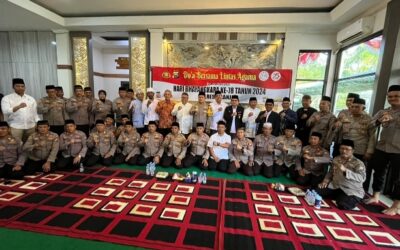 Nganjuk – jurnalpolisi.id Kapolres Nganjuk AKBP Muhammad, S.H., S.I.K., M.Si., didampingi Wakapolres Nganjuk, Pejabat Utama (PJU) serta Kapolsek jajara menggelar do’a bersama lintas agama dalam rangka menyambut Hari Bhayangkara ke-78 tahun 2024, Selasa (25/6/2024). Acara yang digelar di Lobby dan lapangan apel Polres Nganjuk tersebut menghadirkan KH Moch. Samsudin Al Aly (Koordinator Ulama Kamtibmas), Doktor…