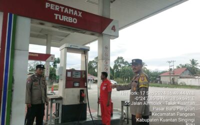 KUANTANSINGINGI,– jurnalpolisi.id Dalam rangka memastikan pendistribusian dan penyaluran bahan bakar minyak (BBM) berjalan dengan baik dan sesuai peraturan, Polsek Pangean melakukan patroli pengecekan di SPBU PT. Kuantan, yang berlokasi di Desa Sako, Kecamatan Pangean, Kabupaten Kuantan Singingi (Kuansing). Kegiatan ini dilaksanakan pada hari Selasa (17/9/2024), pukul 16.30 WIB. Patroli pengecekan tersebut dipimpin oleh KSPK Bripka…