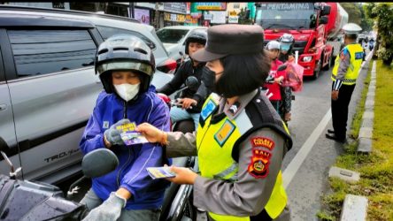 160 Sticker Himbauan Tertib Berlalu Lintas Diberikan Kepada Para Pengendara