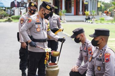 Kebumen – jurnalplisi.id Sebanyak 26 bintara remaja angkatan 46 dan 47 Polres Kebumen mengikuti tradisi pembaretan. Pembaretan yang digelar dua hari berturut-turut secara resmi ditutup Kapolres Kebumen AKBP Burhanuddin dengan penyiraman air kembang dan pemasangan baret coklat khas Sat Samapta, Jumat 12 Agustus 2022. “Sebagai anggota Polri harus dapat menjaga sikap dan perilaku, serta moral….