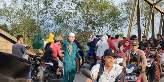 Aksi Heroik Anggota DPRD Rohil Mengurai Kemacetan di Jembatan Sungai Kubu.